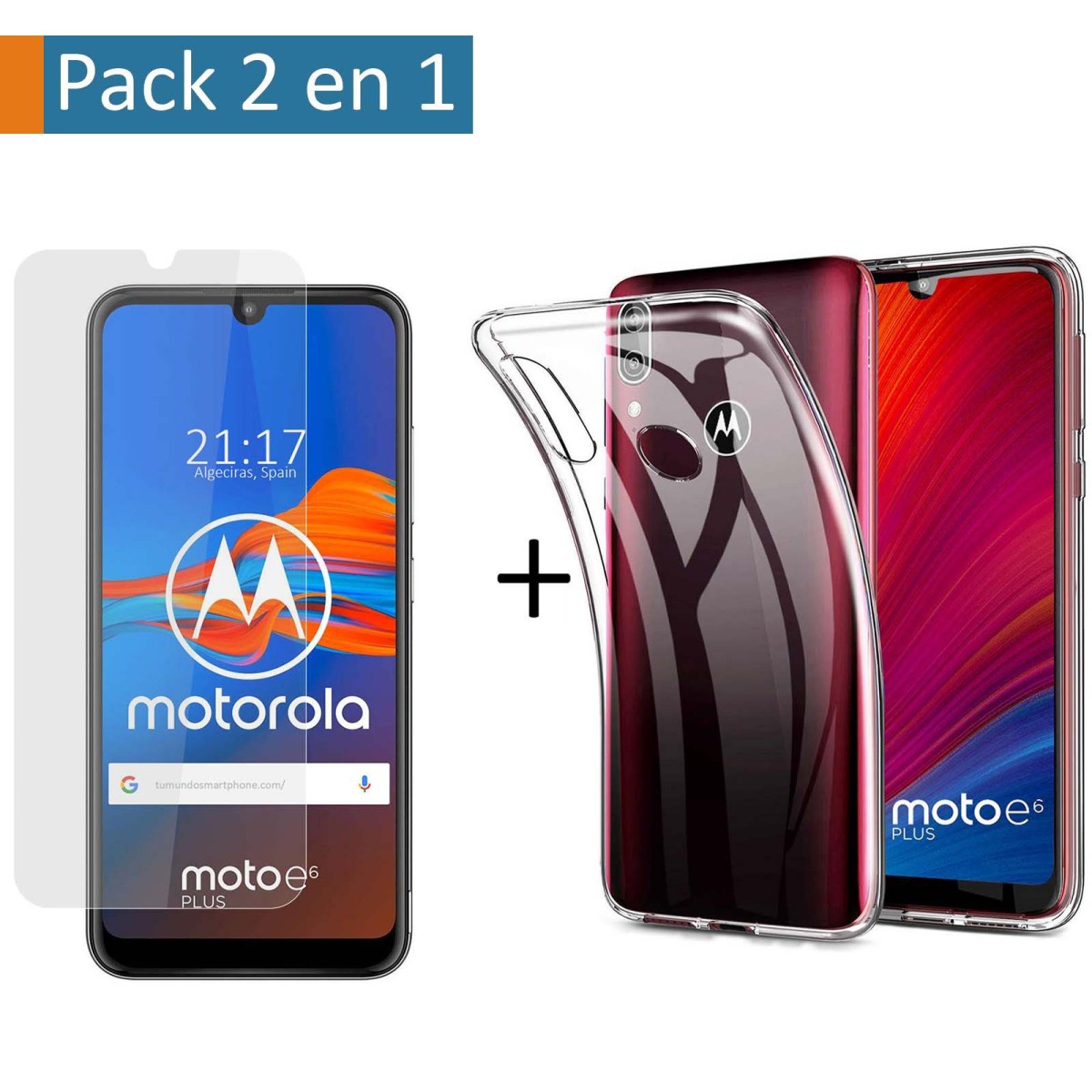 Pack 2 En 1 Funda Gel Transparente + Protector Cristal Templado para Motorola Moto E6 Plus