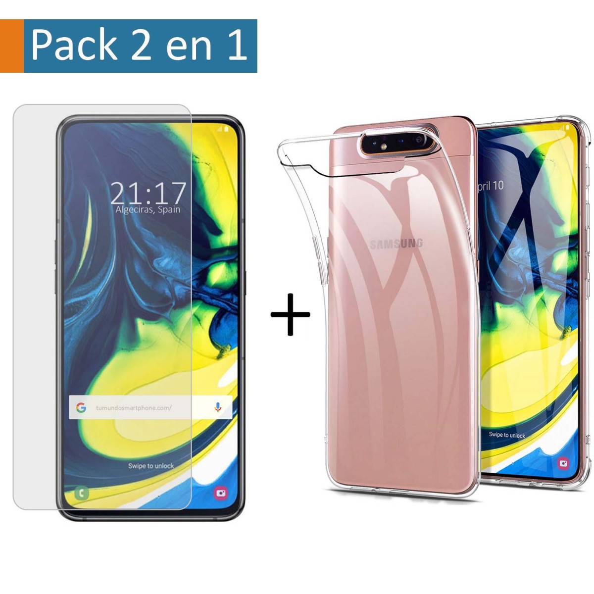 Pack 2 En 1 Funda Gel Transparente + Protector Cristal Templado para Samsung Galaxy A80