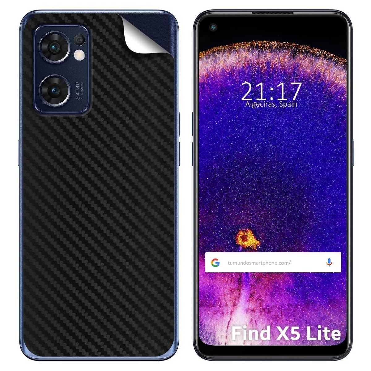 Decora la parte trasera de tu smartphone con esta pegatina de vinilo autoadhesiva con textura Carbono. Diseñado para adaptarse a tu Oppo Find X5 Lite 5G,como se muestra en la imagen. No cubre los laterales, solo la parte trasera de tu teléfono.