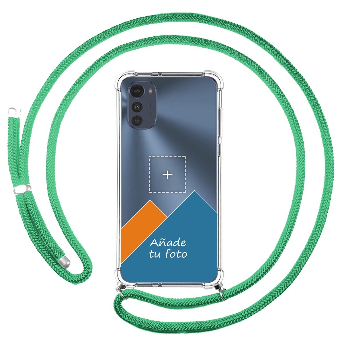 Personaliza tu Funda Colgante Transparente para Motorola Moto E32 4G con Cordon Verde Agua Dibujo Personalizada