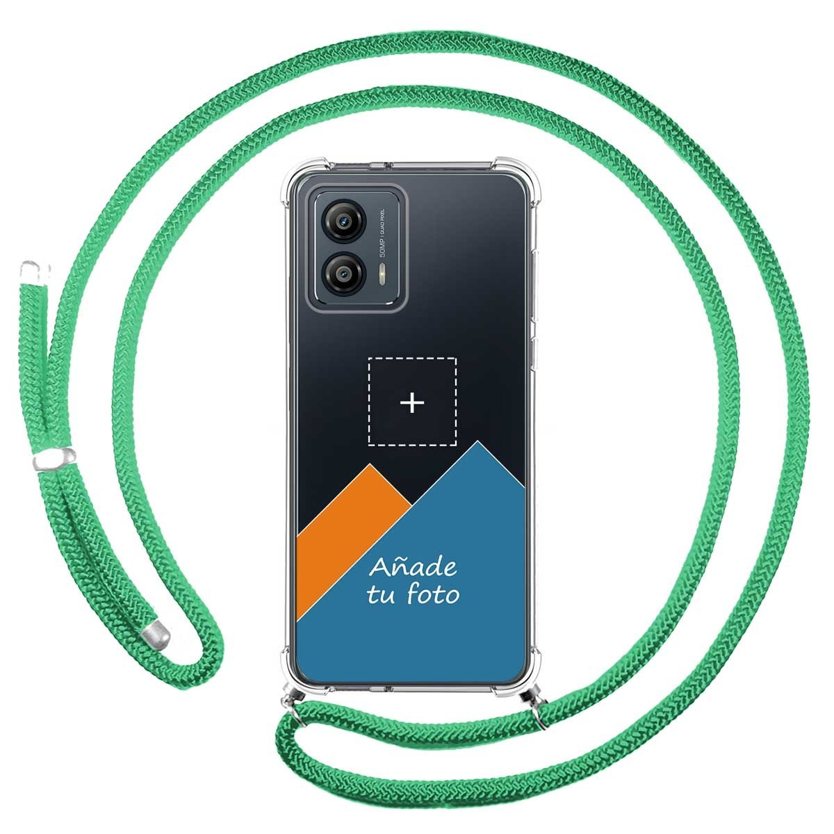 Personaliza tu Funda Colgante Transparente para Motorola Moto G53 5G con Cordon Verde Agua Dibujo Personalizada
