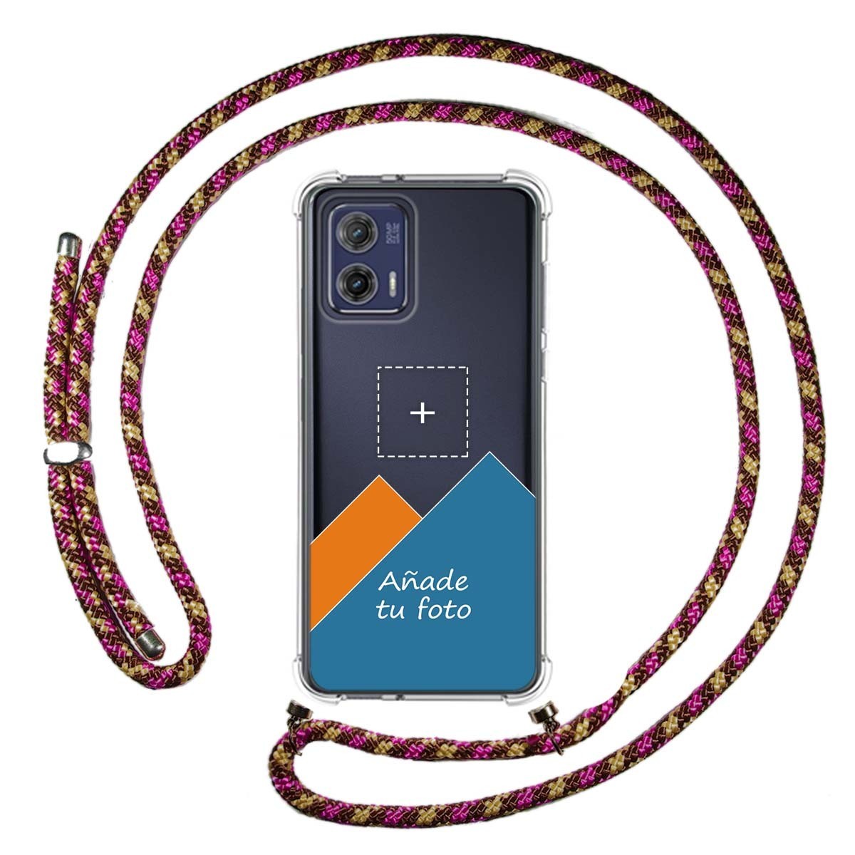 Personaliza tu Funda Colgante Transparente para Motorola Moto G73 5G con Cordon Rosa / Dorado Dibujo Personalizada