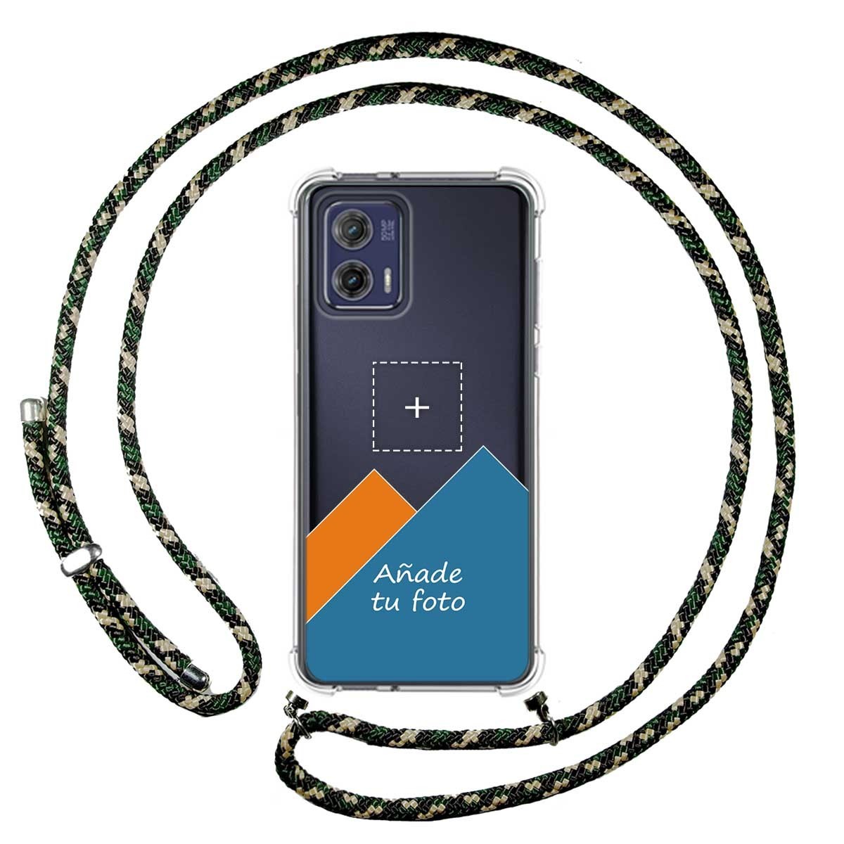 Personaliza tu Funda Colgante Transparente para Motorola Moto G73 5G con Cordon Verde / Dorado Dibujo Personalizada