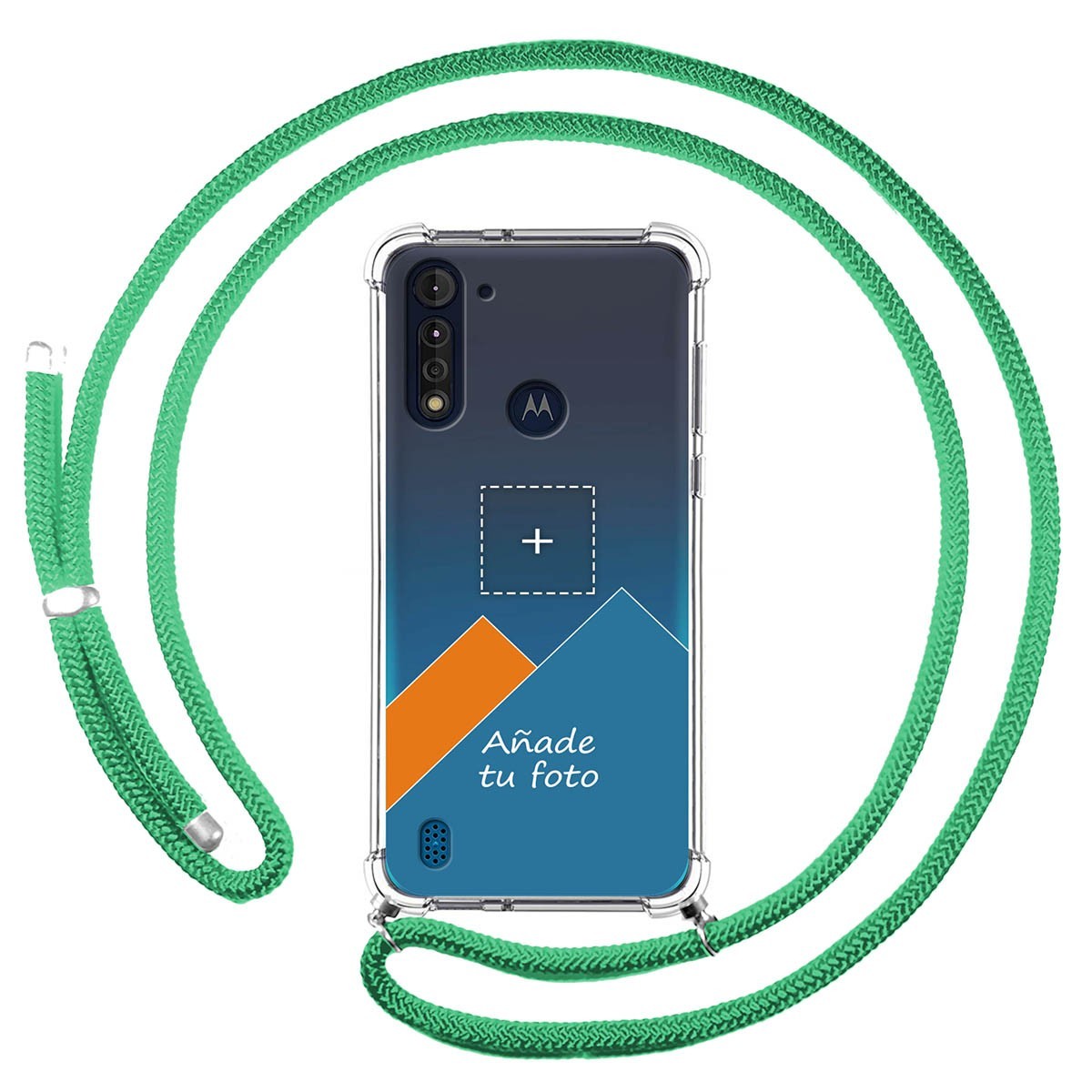 Personaliza tu Funda Colgante Transparente para Motorola Moto G8 Power Lite con Cordon Verde Agua Dibujo Personalizada
