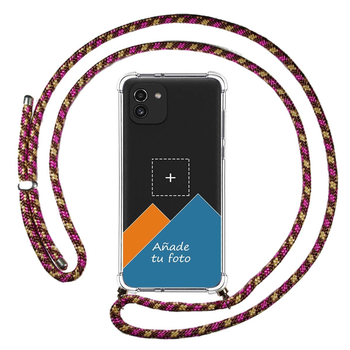Personaliza tu Funda Colgante Transparente para Samsung Galaxy A03 con Cordon Rosa / Dorado Dibujo Personalizada