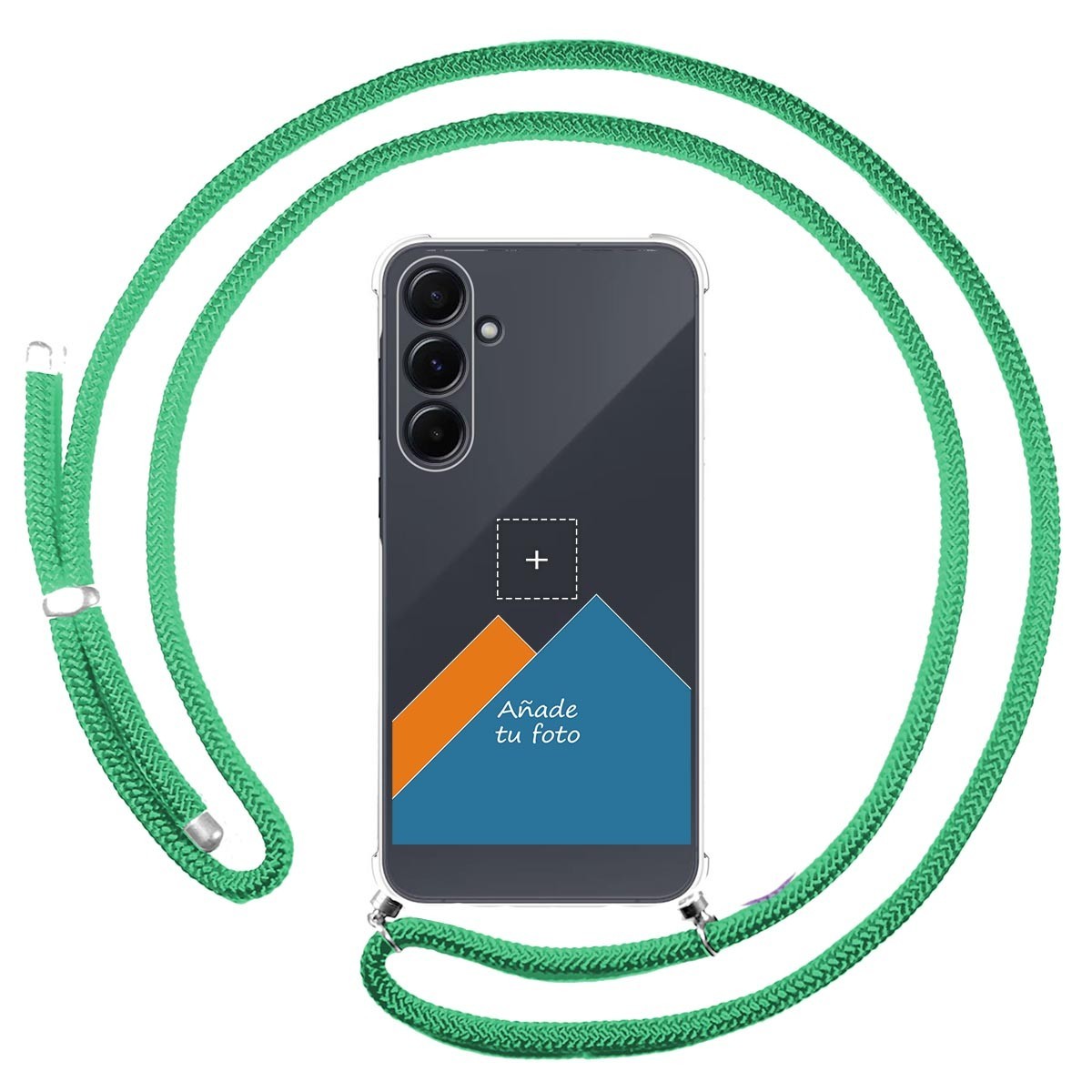 Personaliza tu Funda Colgante Transparente para Samsung Galaxy A35 5G con Cordon Verde Agua Dibujo Personalizada