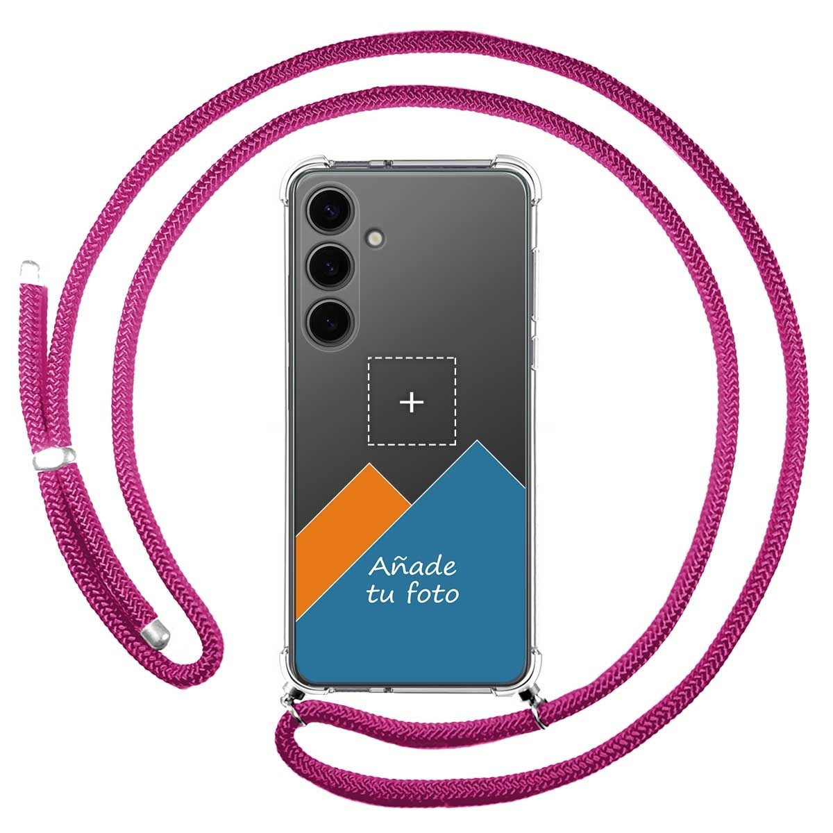 Personaliza tu Funda Colgante Transparente para Samsung Galaxy S24 5G con Cordon Rosa Fucsia Dibujo Personalizada