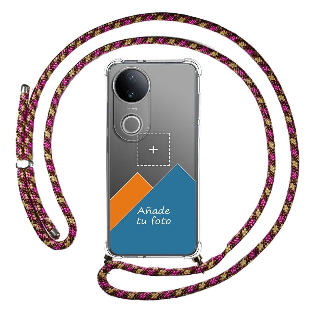 Personaliza tu Funda Colgante Transparente para Vivo V50 5G con Cordon Rosa / Dorado Dibujo Personalizada