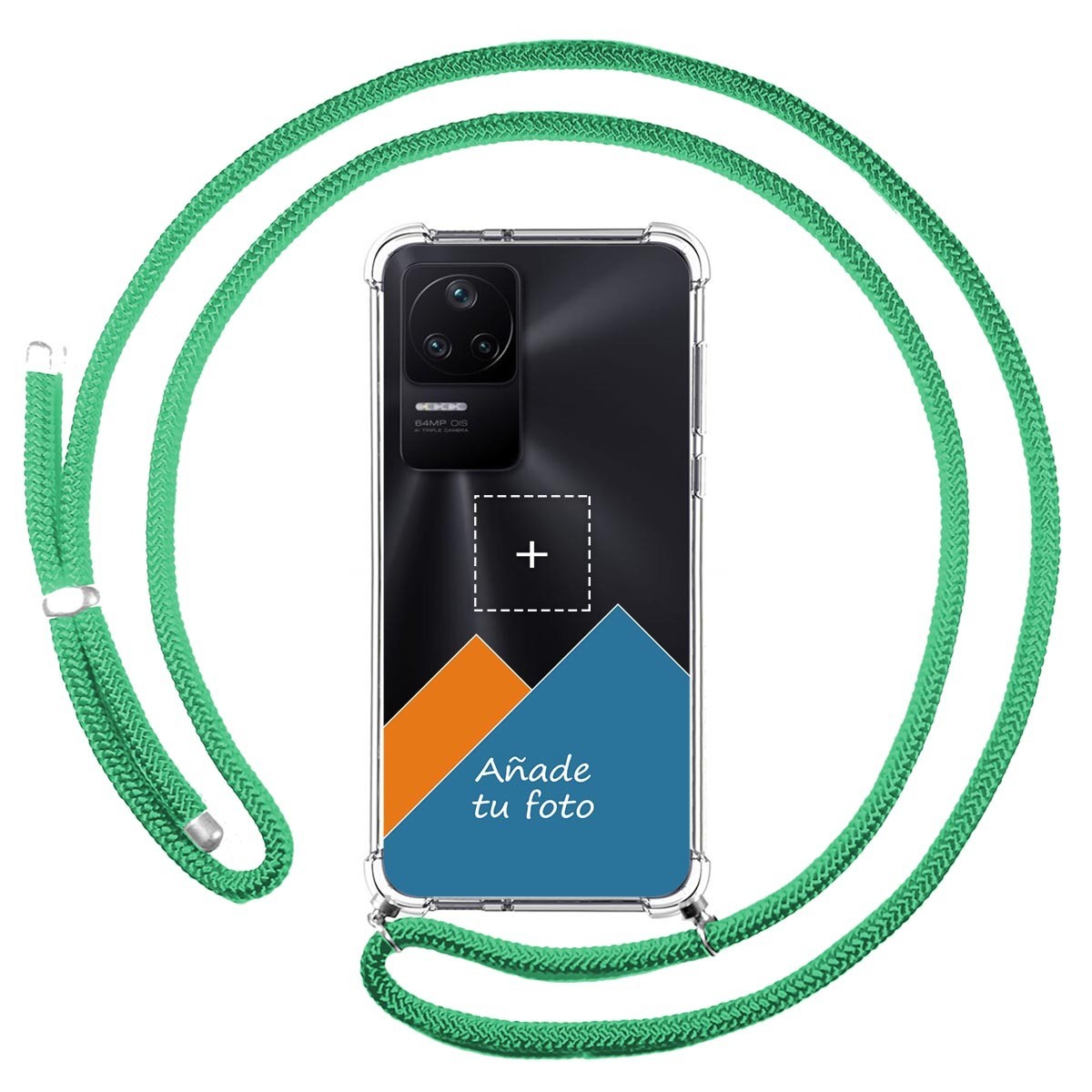 Personaliza tu Funda Colgante Transparente para Xiaomi Poco F4 5G con Cordon Verde Agua Dibujo Personalizada
