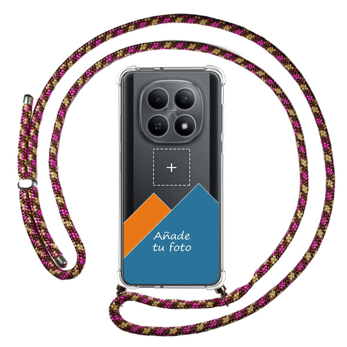 Personaliza tu Funda Colgante Transparente para Xiaomi Poco M8 5G con Cordon Rosa / Dorado Dibujo Personalizada