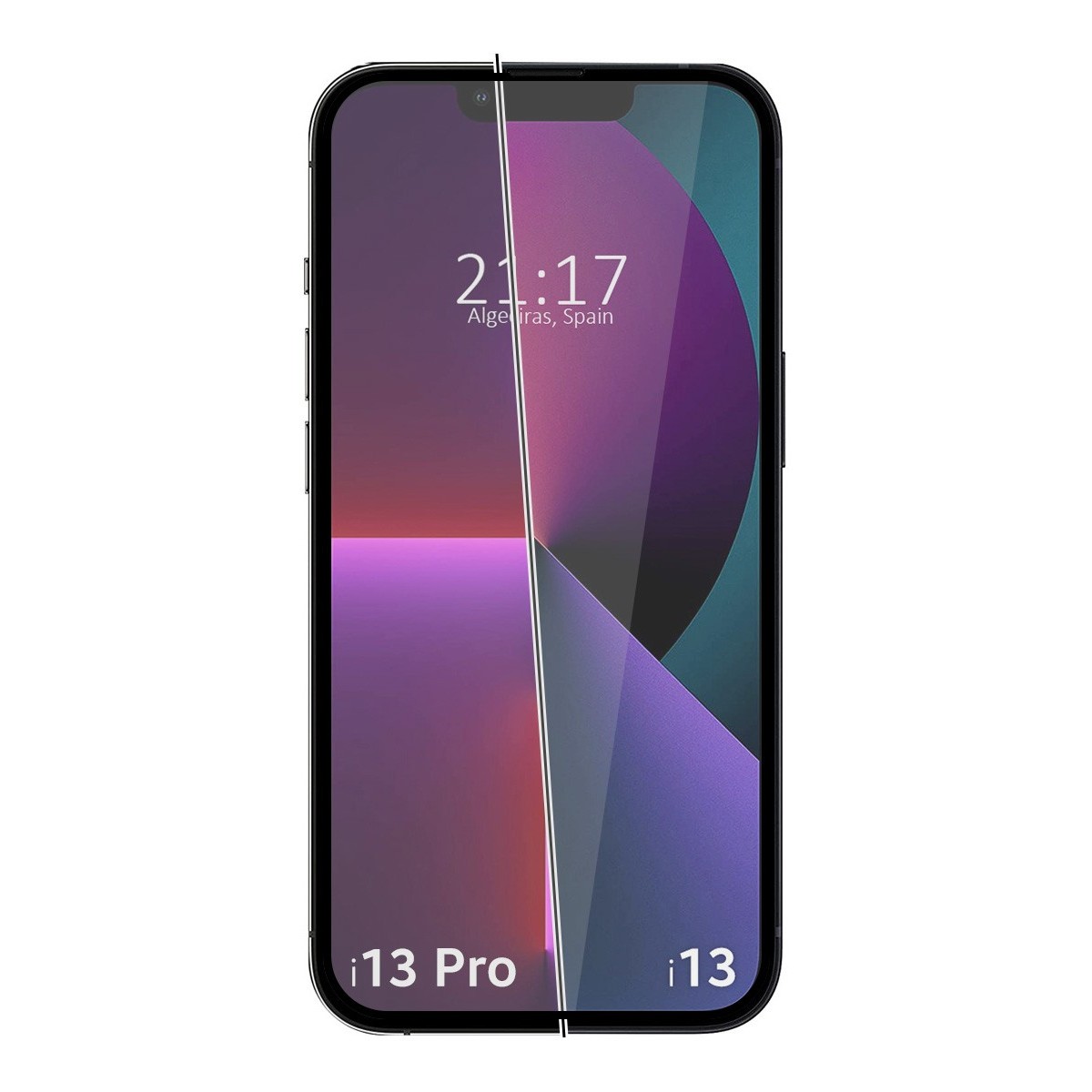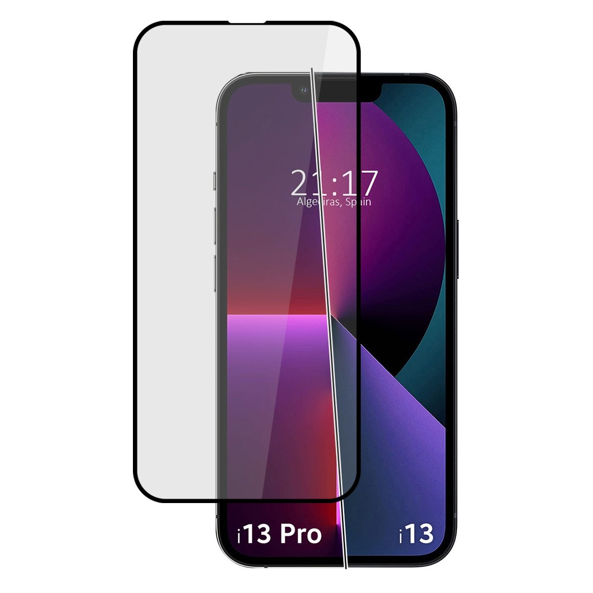Protector de pantalla 5D Negro FULL GLUE para Iphone 13 / 13 Pro (6.1), fabricado con vidrio templado de 0,3 mm que cubre toda la pantalla.