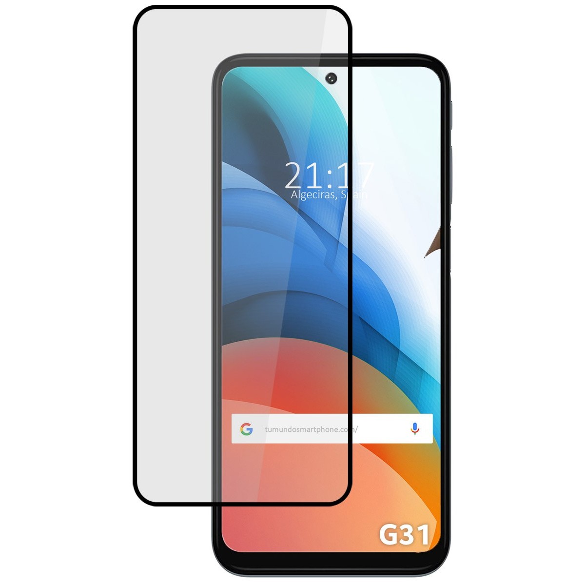 Protector de pantalla 5D Negro FULL GLUE para Motorola Moto G31, fabricado con vidrio templado de 0,3 mm que cubre toda la pantalla.