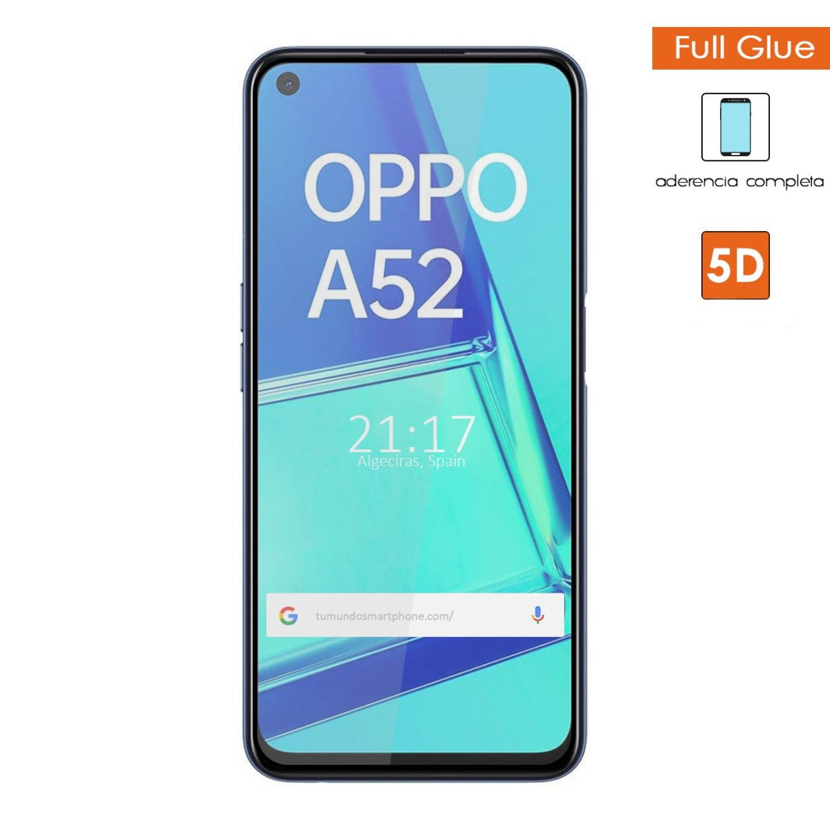 Protector de pantalla 5D Negro FULL GLUE para Oppo A52 / Oppo A72 , fabricado con vidrio templado de 0,3 mm que cubre toda la pantalla.
