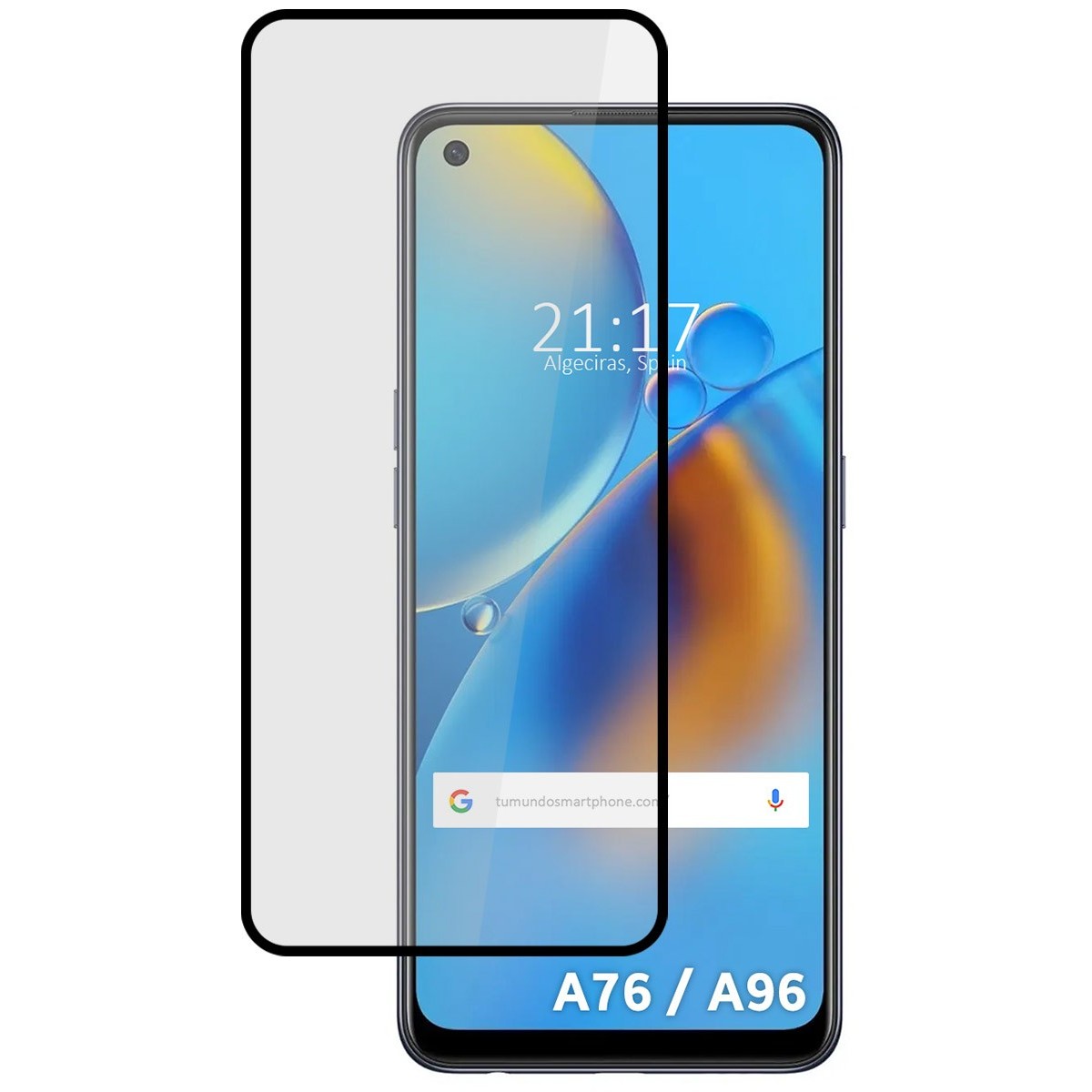 Protector de pantalla 5D Negro FULL GLUE para Oppo A76 / A96, fabricado con vidrio templado de 0,3 mm que cubre toda la pantalla.