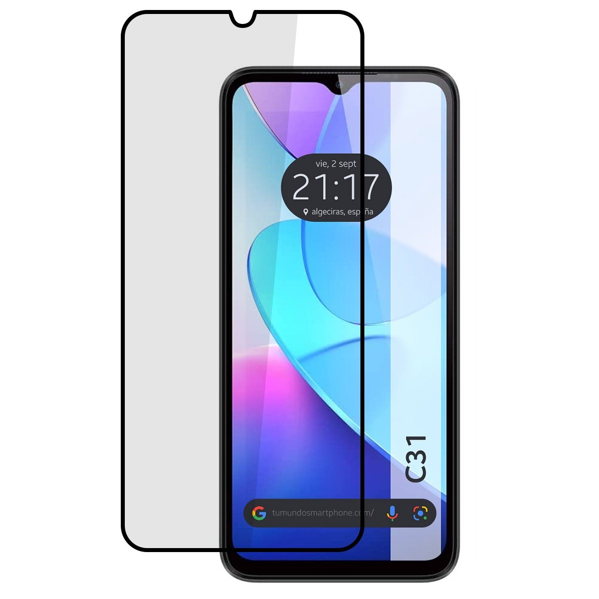Protector Cristal Templado Completo 5D Full Glue Negro para Oukitel C31 Vidrio