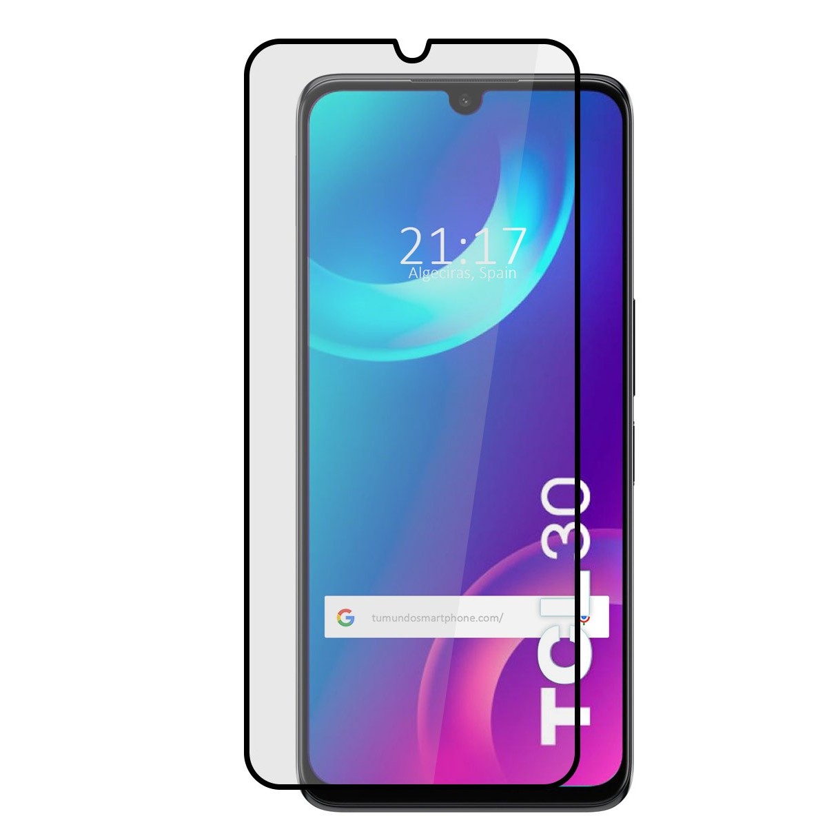 Protector de pantalla 5D Negro FULL GLUE para TCL 30 / 30 5G / 30 Plus, fabricado con vidrio templado de 0,3 mm que cubre toda la pantalla.