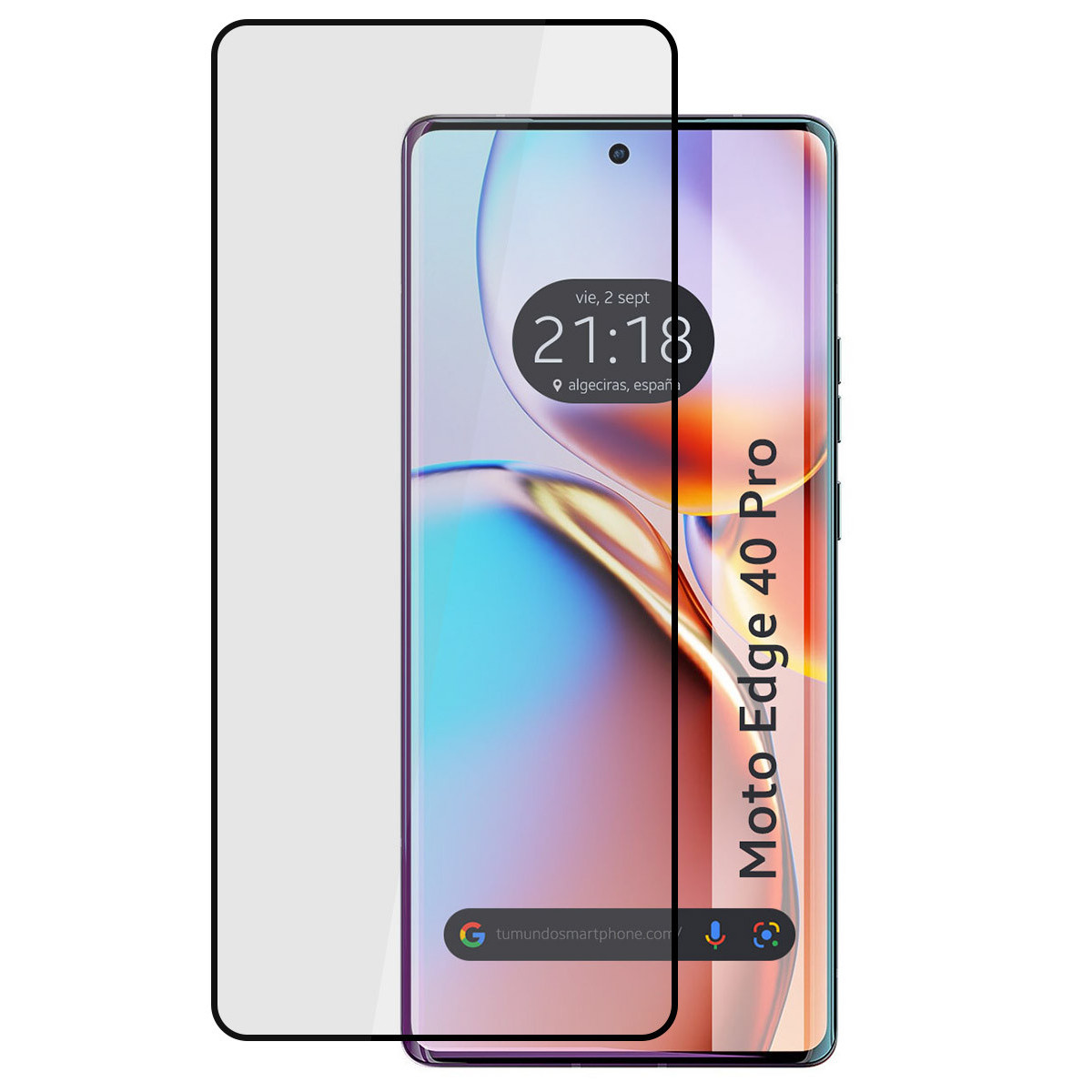 Protector Cristal Templado Curvo 5D Full Glue Negro para Motorola Edge 40 Pro 5G Vidrio