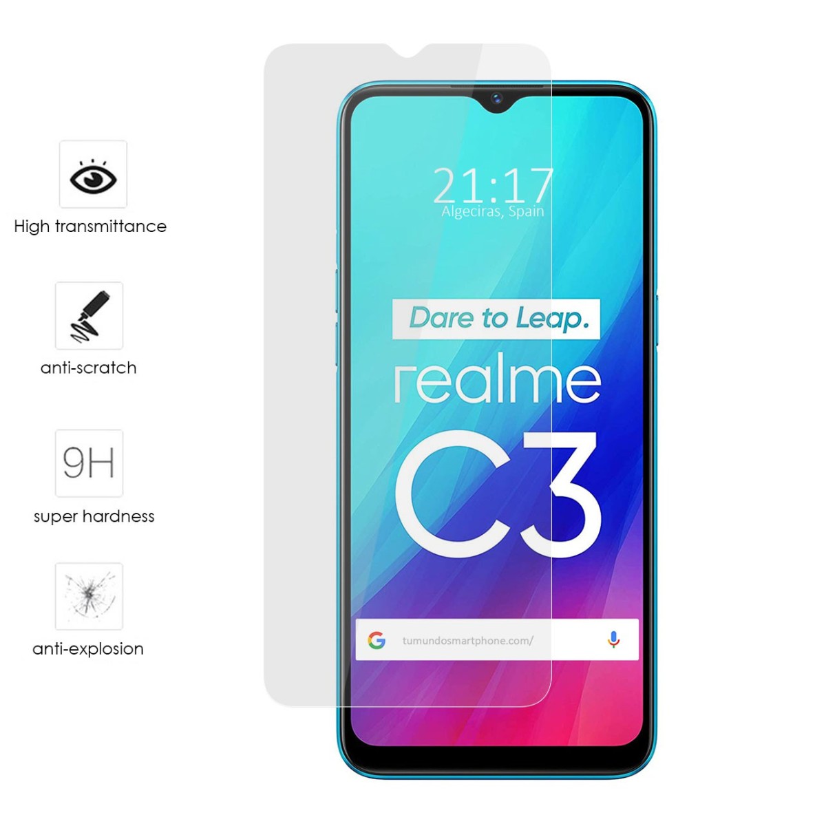 Protector de pantalla transparente para Realme C3 , fabricado con vidrio templado de 0,3 mm, especialmente reforzado durante el procesado, diseñado y construido para resistir cualquier daño y los rasguños externos.