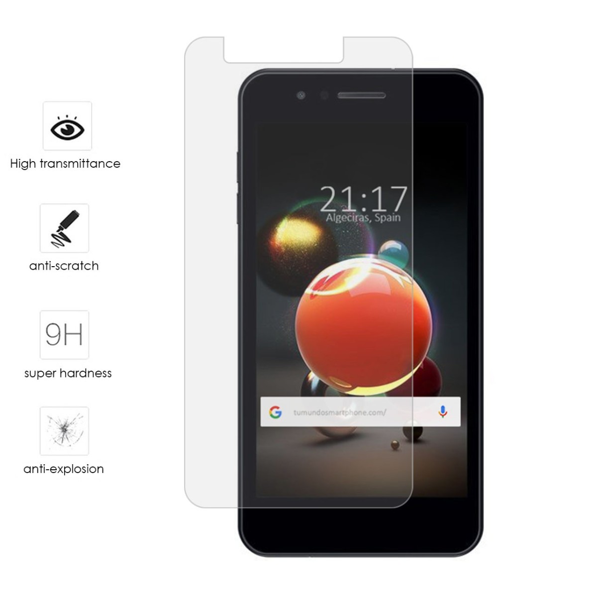 Protector de pantalla transparente para Lg K9 , fabricado con vidrio templado de 0,3 mm, especialmente reforzado durante el procesado, diseñado y construido para resistir cualquier daño y los rasguños externos.